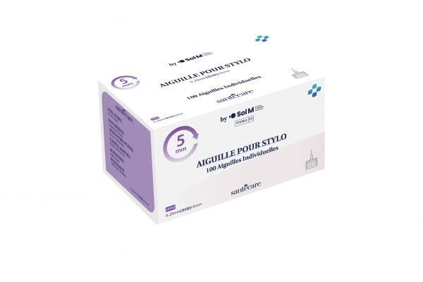 Les aiguilles pour stylo SOL-M™ sont des aiguilles stériles à usage unique utilisées avecle dispositif d’injection du stylo pour l’injection sous-cutanée d’insuline.L’aiguille pour stylo SOL-M™ est destinée à être utilisée avec un stylo injecteur pourl’injection sous-cutanée d’insuline.Conserver au sec, conserver à l’abri de la lumière du soleil. Limites de température : 0-40 ̊C;Limites d’humidité: 0-80%Stérilisé à l’oxyde d’éthylèneDurée de conservation : 5 ans