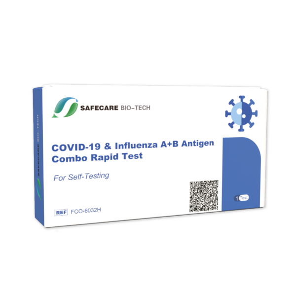 Le test antigénique rapide combo Influenza A + B et COVID-19 est un kit à usage unique destiné à la détection qualitative de la présence d’antigène protéinique de la nucléocapside des antigènes viraux de l’influenza A + B et de l’antigène COVID-19 à partir des prélèvements sur écouvillons nasaux. Ce test est destiné à être utilisé à domicile à partir d’échantillons sur écouvillon nasal prélevés soi-même par des personnes âgées de 12 ans et plus. Le kit est destiné aux individus symptomatiques dans les 7 jours du à partir du début des symptômes ou des individus asymptomatiques qui ont été en contact avec des personnes ayant été diagnostiquées positive ou avec des individus suspectés d’être infectés. Des résultats positifs indiquent la présence de l’Influenza et du SARS-CoV-2.