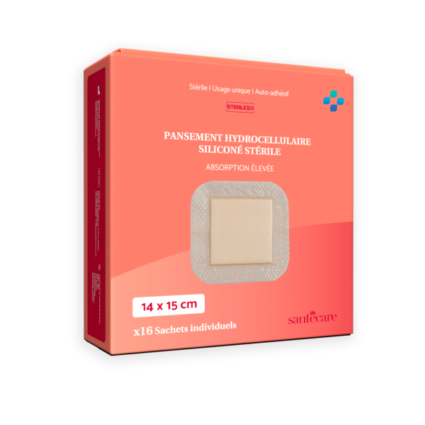 Pansement hydrocellulaire siliconé auto-adhésif Absorption élevée 14×15