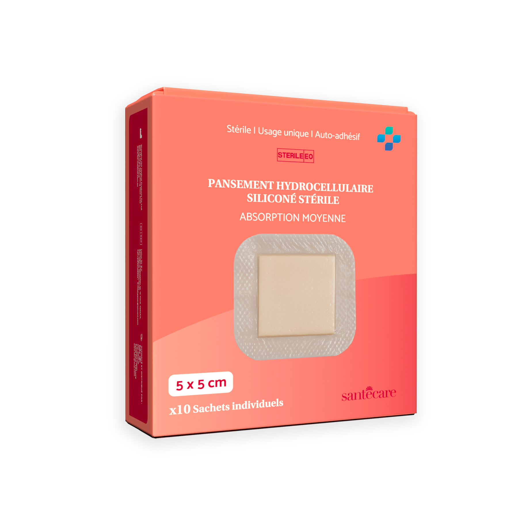 Pansement hydrocellulaire siliconé auto-adhésif Absorption moyenne 5×5 cm